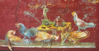 Como aperitivos pondremos unas aceitunas verdes y negras, unas sabrosas brochetas de chistorras con ciruelas deshuesadas que cocinaremos a la plancha y para terminar unos deliciosos huevos de codorniz fritos y aderezados con pimienta y garum. Todo ello regado con un exquisito y fresco vino blanco.
